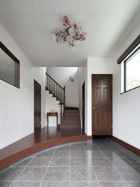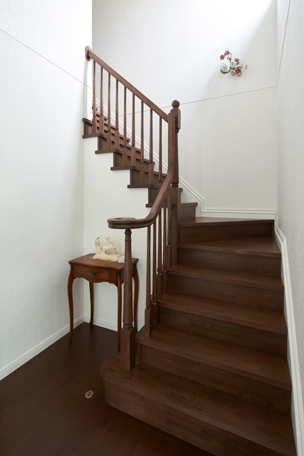 手摺のデザイン、側板の装飾など、小さな部分にもこだわることにより、玄関ホール全体が華やかな雰囲気になりました。