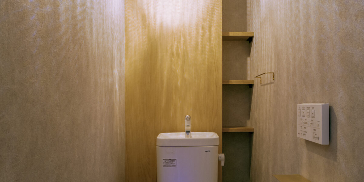 中でも、壁・天井・建具をベージュトーンで統一した住戸は、落ち着きと温かみが共存する“新感覚の空間”として人気です。トイレには住宅デザインの枠を超えた“真似したくなる仕様”を導入。細部に至るまでこだわり抜いた住空間です。