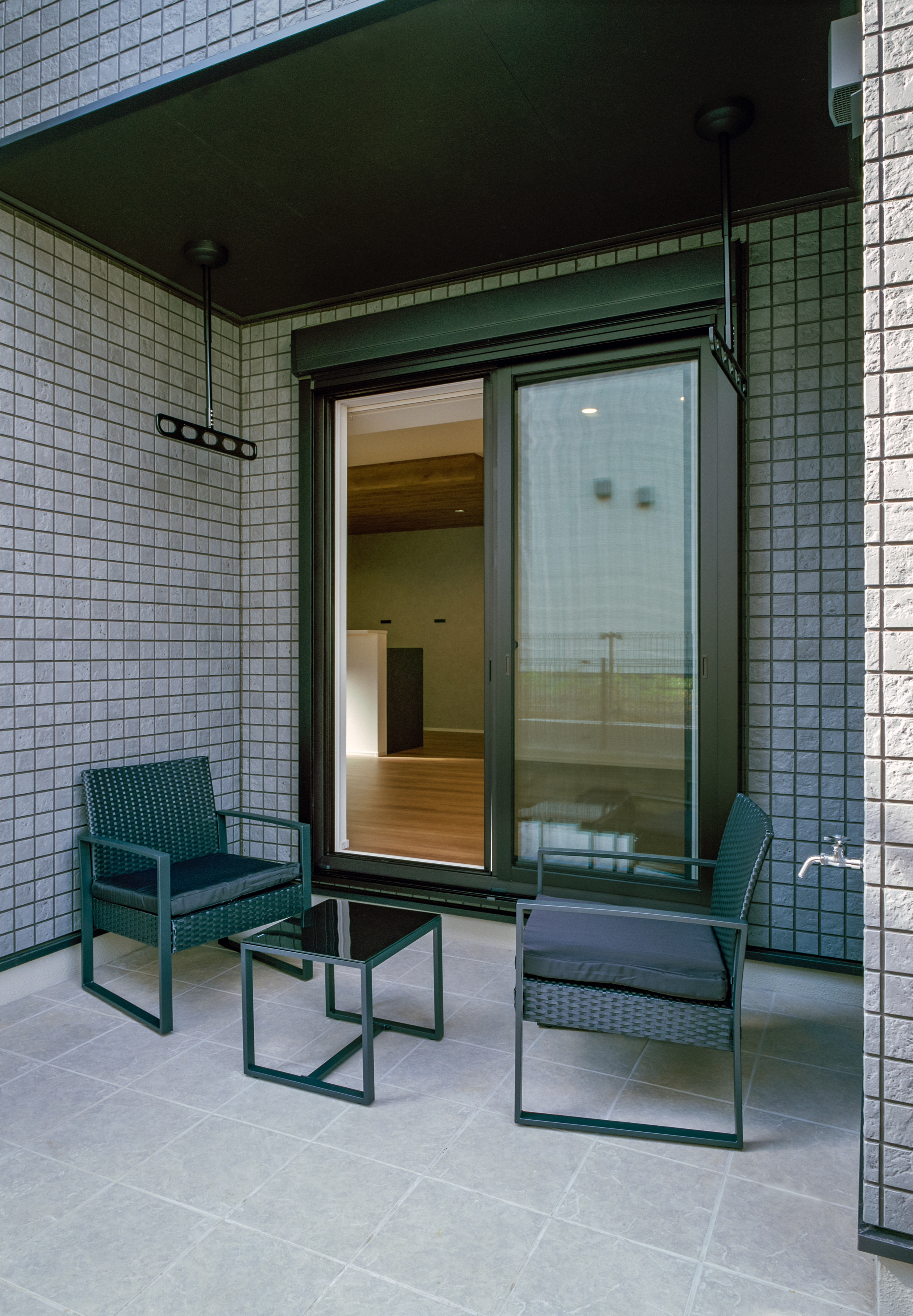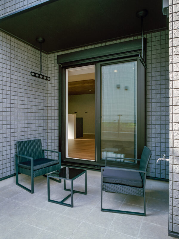 1階住戸には、リビングとつながるタイルデッキを設け、天気の良い日には専用庭でのびやかな時間を過ごせます。
